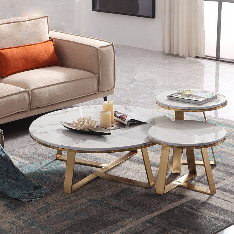Voor een compleet en samenhangend uiterlijk, bieden we ook marmeren salontafel sets die matching zijtafels en accent stukken bevatten.Deze sets zijn perfect voor het creëren van een stijlvolle en gecoördineerde woonruimte.
